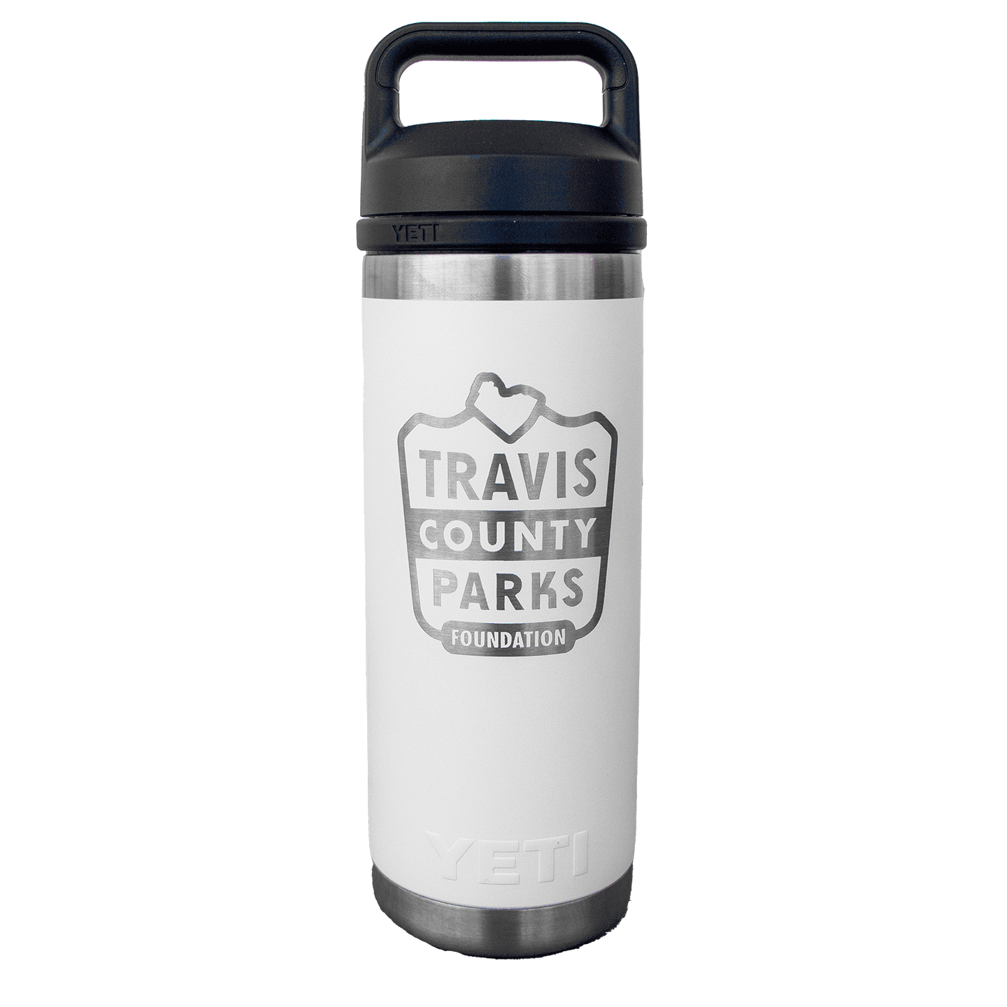 Show your love of Travis County Parks with this 18-oz white YETI Rambler with the Travis County Parks Foundation logo. 100% of the proceeds from your purchase support Travis County Parks Foundation.